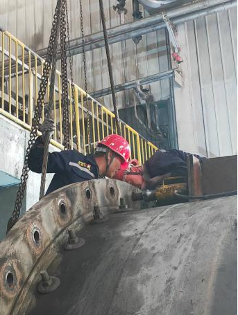 檢修期間,技術人員全程現場駐點指導與監(jiān)督。從舊端蓋的拆卸、接觸面的精細打磨處理,到新端蓋的精準起吊定位以及最終的密封性能測試,每一道工序均嚴格遵循既定工藝標準和質量要求。面對端蓋重量大、安裝空間受限等技術難題,檢修團隊迎難而上,憑借專業(yè)的吊裝設備和精湛的操作技能,平穩(wěn)高效地完成了舊端蓋拆除與新端蓋安裝就位。經過細致調整連接螺栓的緊固力矩,確保了端蓋與筒體之間達到卓越的密封效果。安全監(jiān)督人員全程旁站監(jiān)護,對吊裝作業(yè)、動火作業(yè)、臨時用電等關鍵環(huán)節(jié)實施嚴格安全管控,有力保障了整個施工過程的安全零事故。通過全體參檢人員的協同攻堅,端蓋更換任務較原計劃提前17小時圓滿完成。